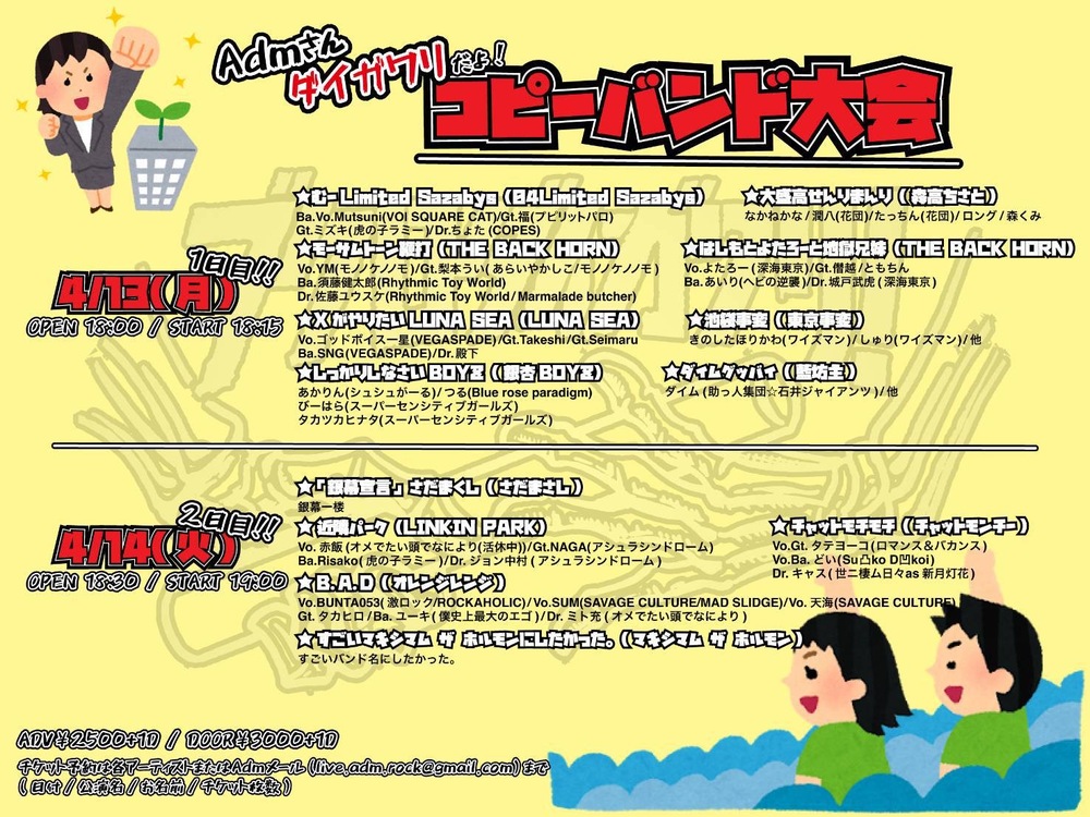 Ticket 前売¥2,500 当日¥3,000(税込・ドリンク代別)